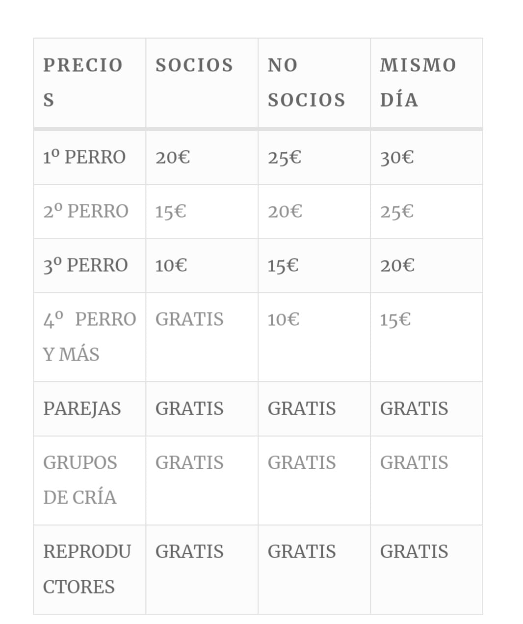 No socios = 60 euros